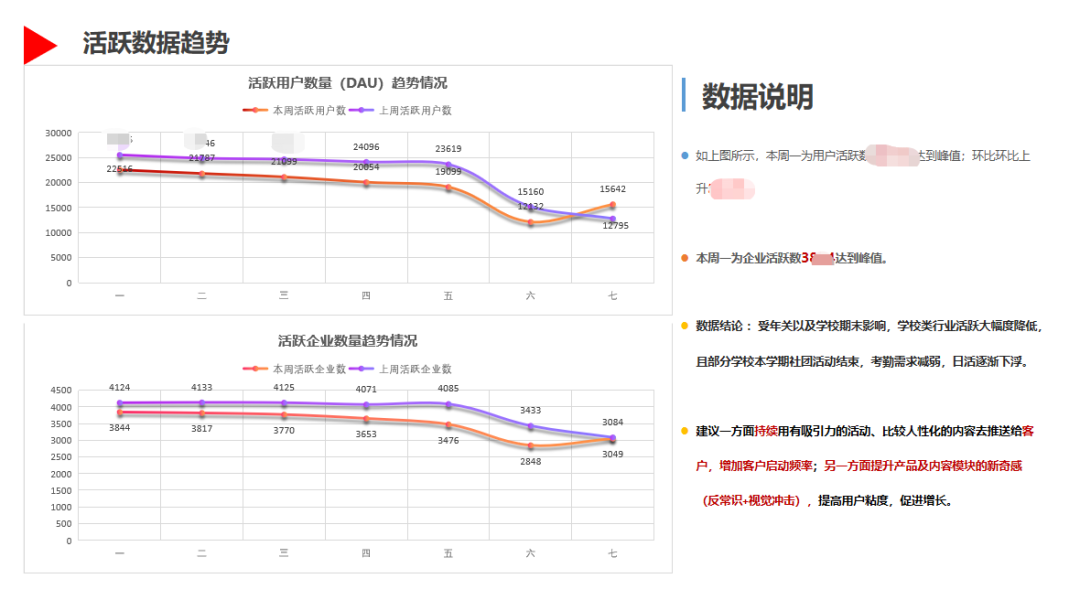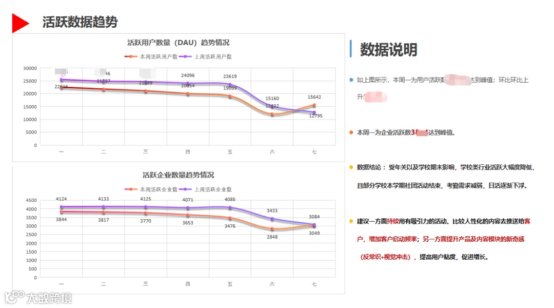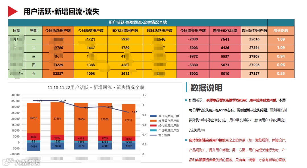 受众对象是团队的业务人员,报告侧重点就在于挖掘问题点,并提出改进方案以及可执行建议,实现数据驱动业务。
