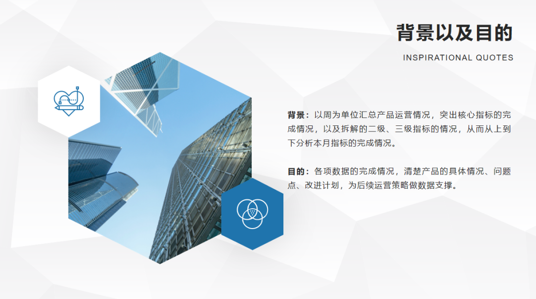 ▶背景以及目的——描写报告的业务背景,只有受众了解了才能知道报告的价值所在