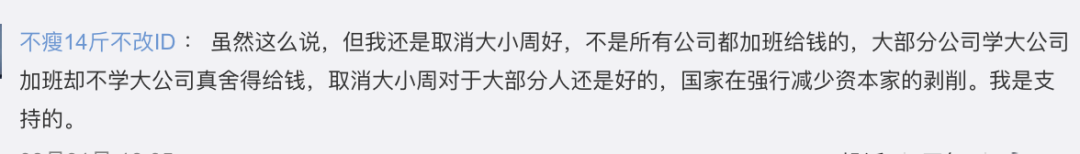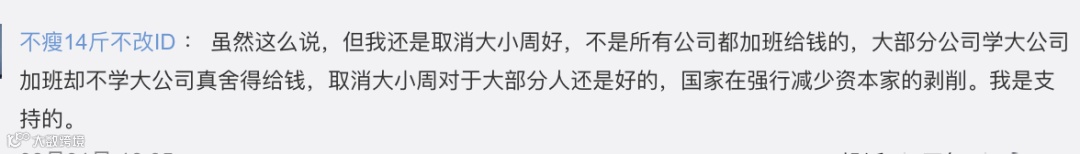取消大小周之后,由于这两天是算加班,2 倍薪资,等于是每个月少了 4 个工作日,4/22 = 18.18%。
