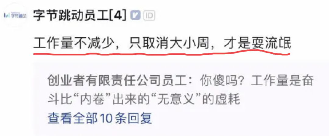此前就有字节员工吐槽称,“工作量不减少,只取消大小周,是耍流氓”。