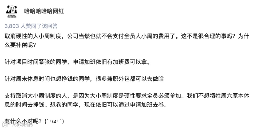 这又回到了大多数打工人的初心。出来工作大部分都是为了赚钱,如果你觉得大小周加班不值,那么可能是报酬不到位。而在字节跳动员工的眼中,一些人愿意大小周,主要是因为他们给的太多了。