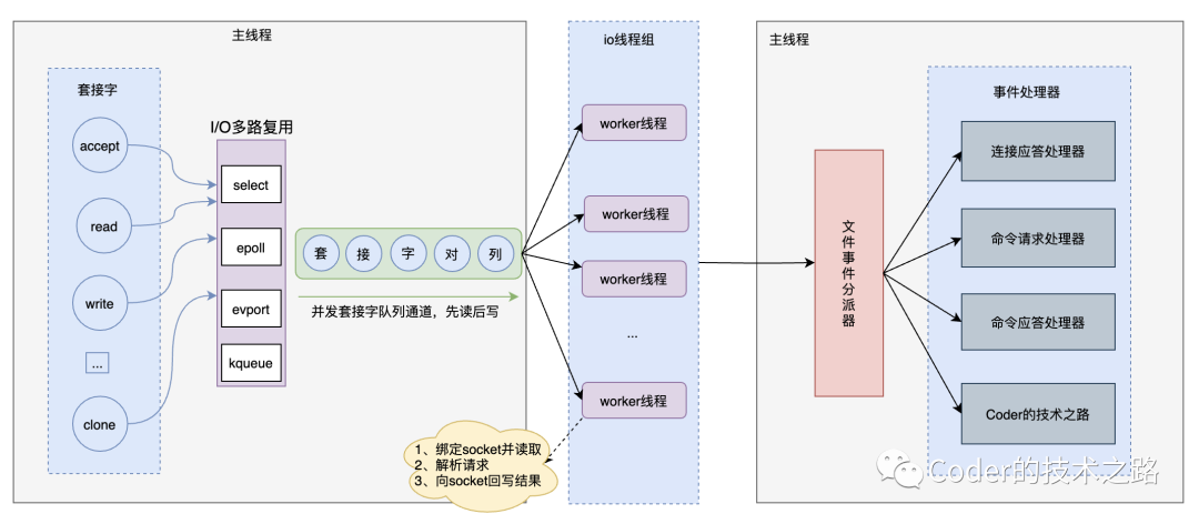 对客户端的任何请求,其实还是主线程在执行,避免了操作相同数据时线程间的竞争,把io部分并行化,降低了io对资源的损耗,从而提升了系统的吞吐量。仔细想来,感觉和rpc中的异步调用差不多意思,都是绑定来源,等待处理完成后给给各来源返回对应结果。