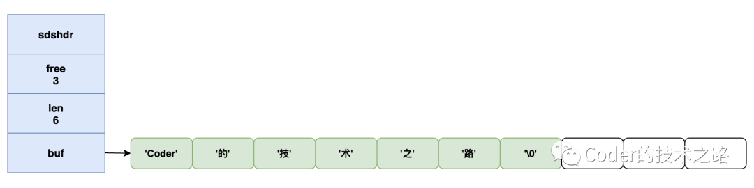 可以看到,相比于C语言来说,也就多了几个字段,分别用来标识空闲空间和当前数据长度,但简直是神来之笔: