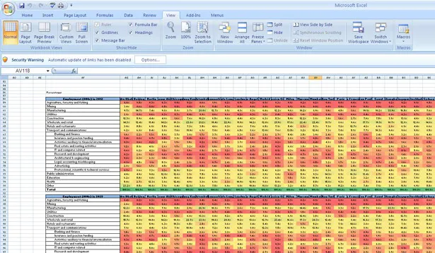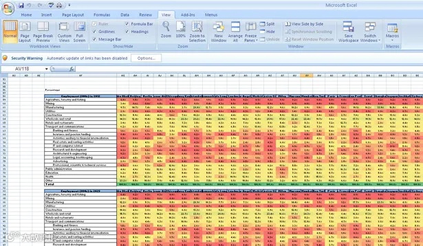 Excel的图形化功能并不强大,但Excel却是分析数据的理想工具,上图是Excel生成的热力地图。