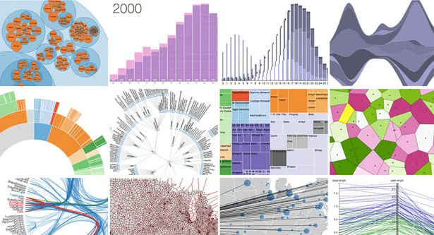 D3能够提供大量线性图和条形图之外的复杂图表样式,例如Voronoi图、树形图、圆形集群和单词云等。