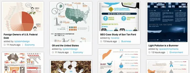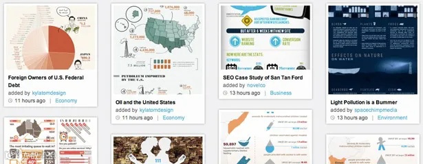 Visual.ly就是最流行的一个选择。虽然Visual.ly的主要定位是:“信息图设计师的在线集市”,但是也提供了大量信息图模板。虽然功能还有很多限制,但是Visual.ly绝对是个能激发你灵感的地方。