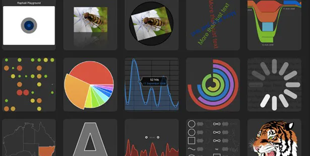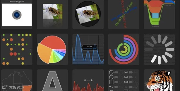 Raphael是创建图表和图形的JavaScript库,与其他库最大的不同是输出格式仅限SVG和VML。