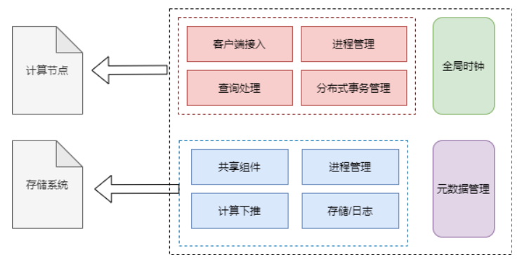 同时还增加了分片管理和全局时钟。分片管理用来管理集群的分片信息,全局时钟的介绍见下一节。