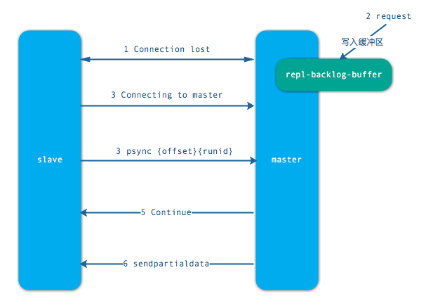 当从节点正在复制主节点时,如果出现网络闪断和其他异常,从节点会让主节点补发丢失的命令数据,主节点只需要将复制缓冲区的数据发送到从节点就能够保证数据的一致性,相比较全量复制,成本小很多。