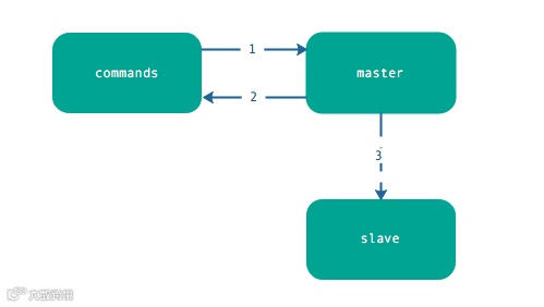 1、主节点接受处理命令 2、主节点处理完后返回响应结果 3、对于修改命令,异步发送给从节点,从节点在主线程中执行复制的命令。