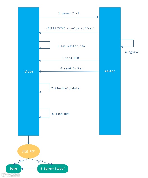 1、如果回复 +FULLRESYNC {runId} {offset} ,那么从节点将触发全量复制流程。