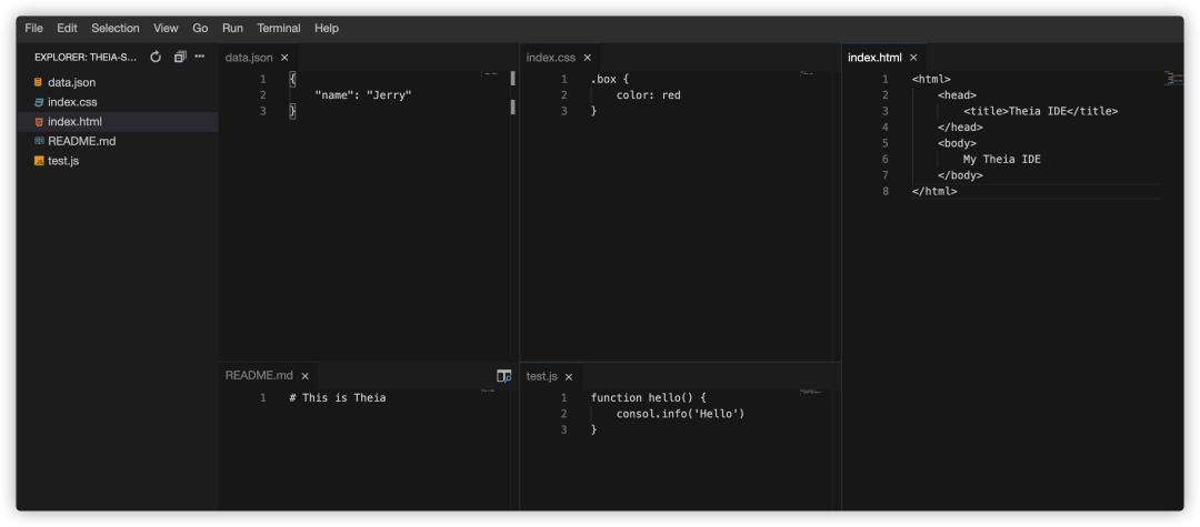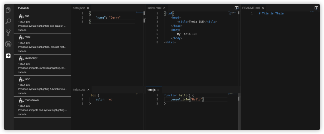 哈哈,是的,它跟 VS Code 几乎长得一模一样,不仅如此,它同样支持 VS Code 中的插件,所以你可以在 Theia 中尽情的“享用” VS Code 的插件市场。