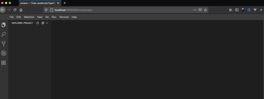 通过日志我们可以看出,Theia IDE 已经成功启动并且监听 3000 端口了,我们打开浏览器看一下它的庐山真面目: