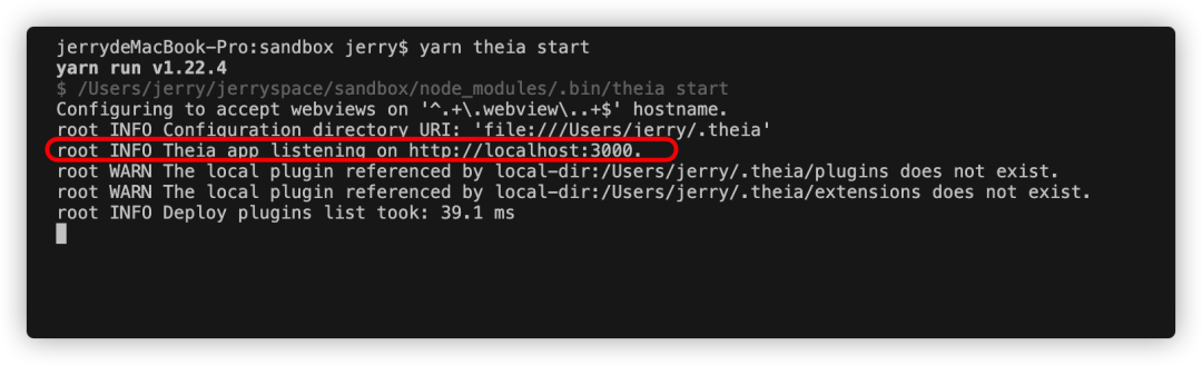 以后我们就可以直接用 yarn xxx 的方式来执行了。至此,我们本地已经成功构建了一个 IDE ~