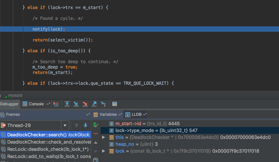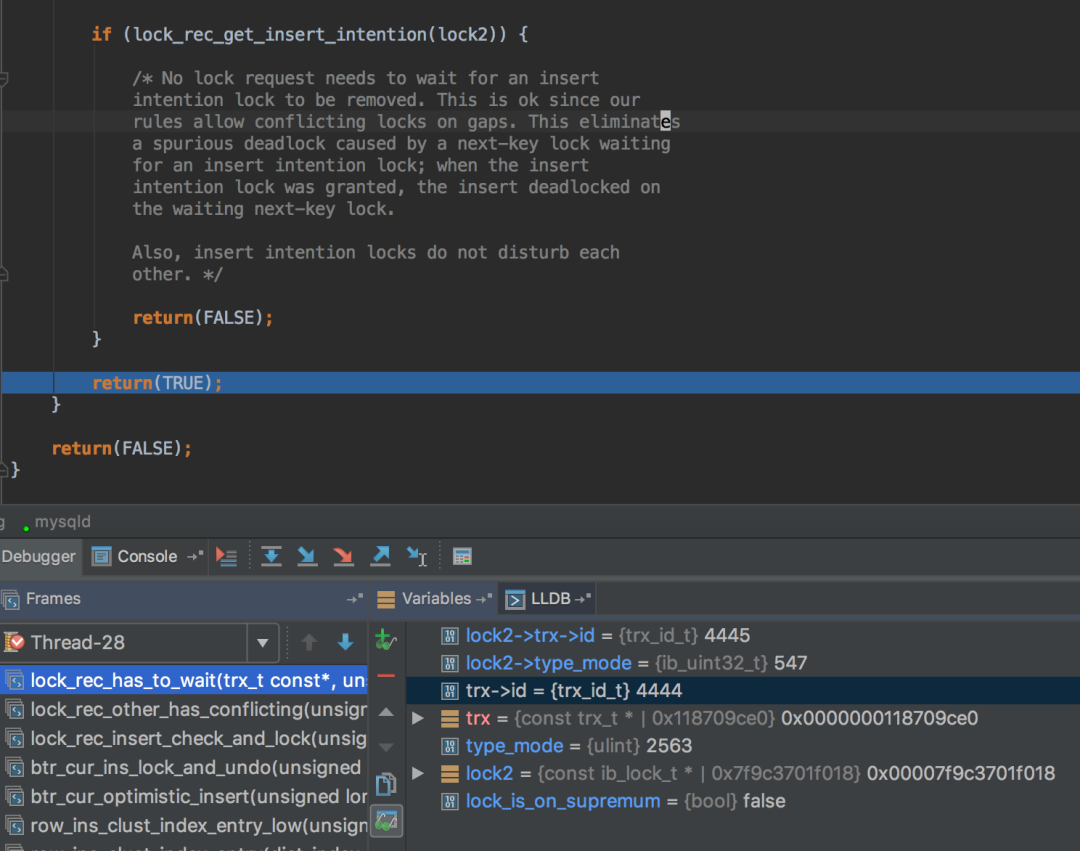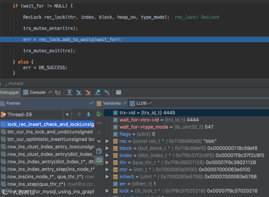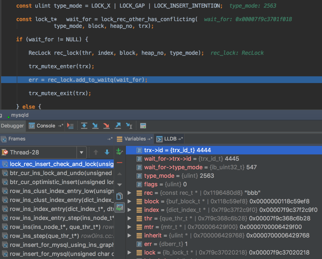 接下来通过debug MySQL的源码来重新复现上面的场景。