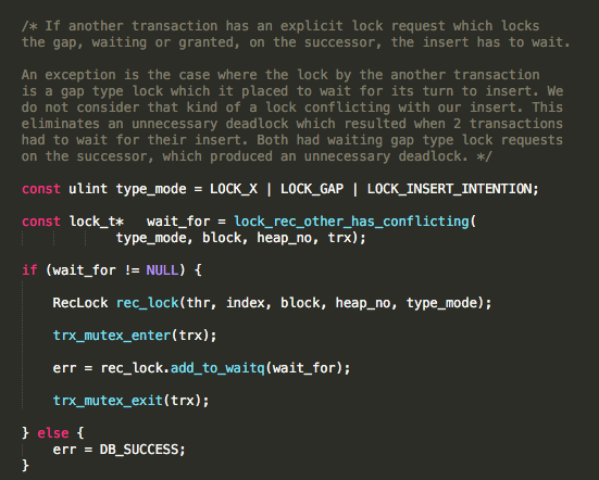截取自InnoDB的lock_rec_insert_check_and_lock方法实现