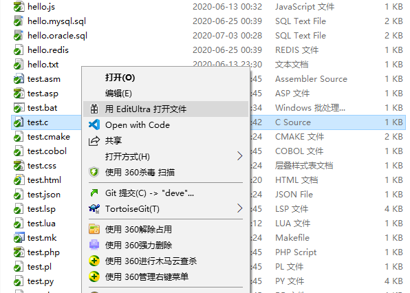 二级菜单文件右键弹出菜单用于向WINDOWS资源管理器右键菜单注册/卸载用 EditUltra 打开文件菜单项。