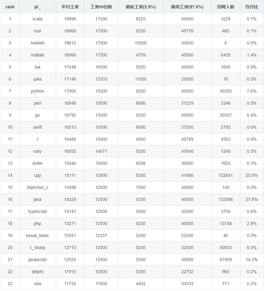 虽然java的市场占有率第一,然而工资最高的是scala。python整天吹牛,也就是第7。真正赚钱的语言,不是培训班教的。培训班量产的,肯定赚不了钱。