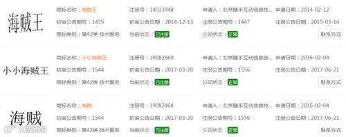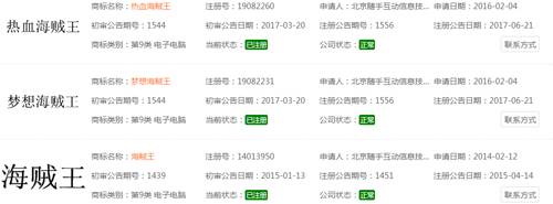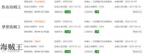 OP的版权方集英社在2007年7月4日申请注册了“航海王ONE PIECE”的各类商标,但并没有注册“海贼王”的商标,而随手互动公司在2007年8月24日就申请了“海贼王”的商标,并成功注册。当集英社意识到“海贼王”商标的重要性,在2013年申请注册“海贼王”商标时,毫无疑问被驳回了!