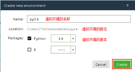 #创建一个环境名为py36,指定版本为3.6conda create -n py36 python=3.6