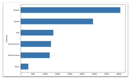 np.exp(data[data[ Year ] == 2018].groupby( Continent )[ Log GDP per capita ].mean()).sort_values().plot(kind= barh ,figsize=(12,8))