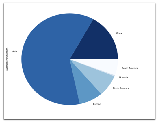 data[data[ Year ] == 2018].groupby([ Continent ])[ Gapminder Population ].sum().plot(kind= pie ,figsize=(12,8),cmap="Blues_r", # defaultsto orangish)
