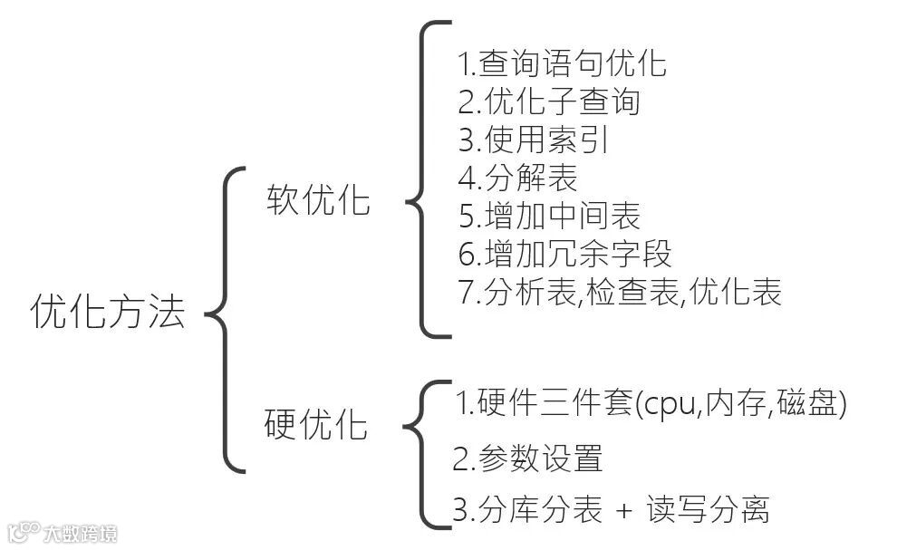 笔者将优化分为了两大类,软优化和硬优化,软优化一般是操作数据库即可,而硬优化则是操作服务器硬件及参数设置.