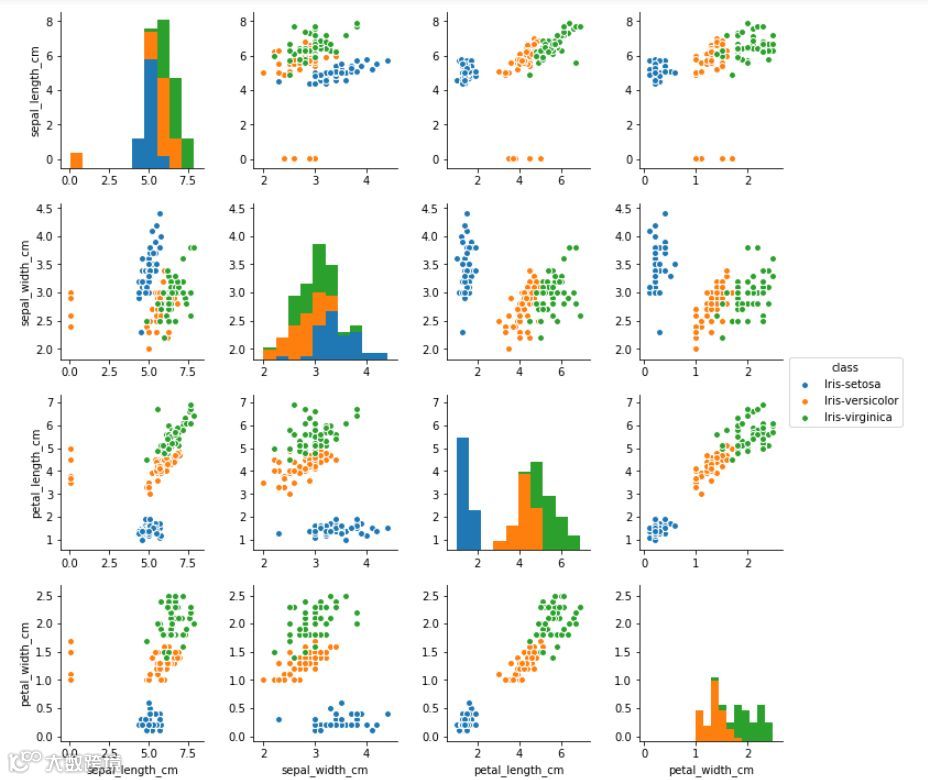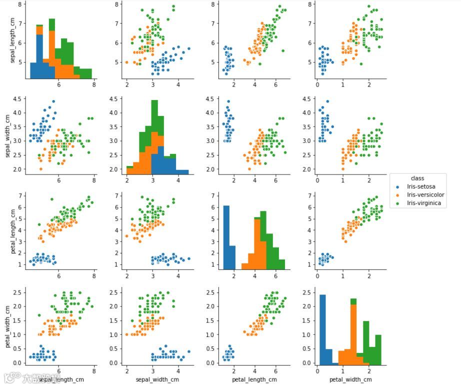 通过petal_length_cm(花瓣长度)可以轻松区分Iris-setosa与其他两种花。