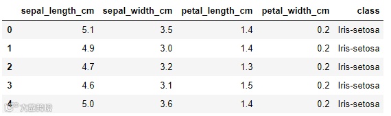 iris_data = pd.read_csv(open('D:\python数据分析\数据\iris-clean-data.csv'))iris_data.head()