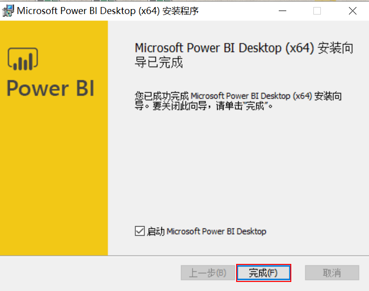 第七步、点击完成,并且启动Microsoft Power BI Desktop。
