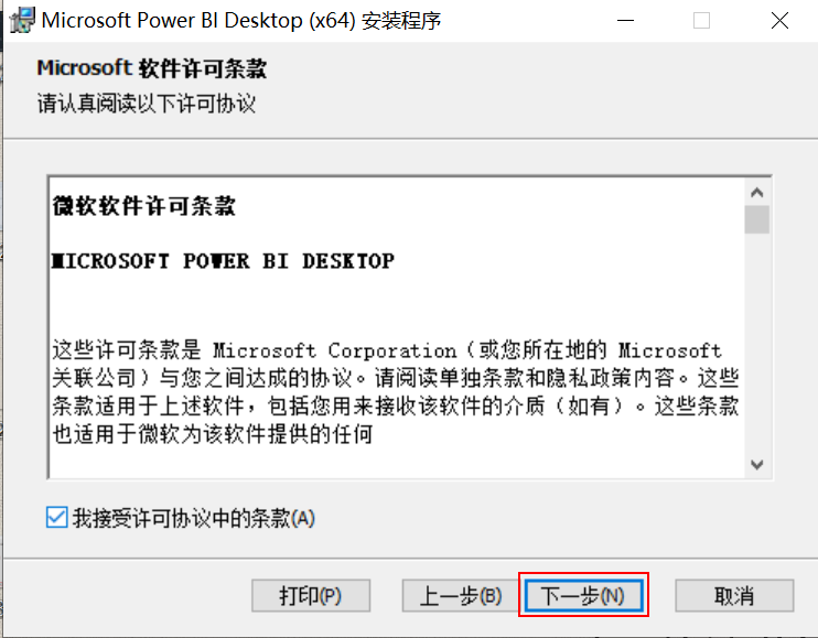 第四步、勾选“我接受许可协议中的条款”,点击下一步。
