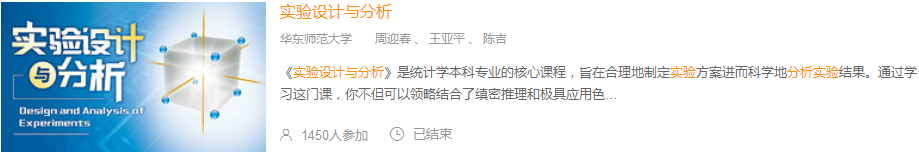 本课程涵盖数理模型详细讲解以及R软件实际操作等综合内容,兼顾逻辑性与实用性。课程内容主要包括单因子实验、多因子实验、区组设计、拉丁方设计、析因实验等。课程还配备了R软件的介绍视频、完整易读的R代码及其说明、示例数据等资源,让你学会如何用R进行实际的数据分析。