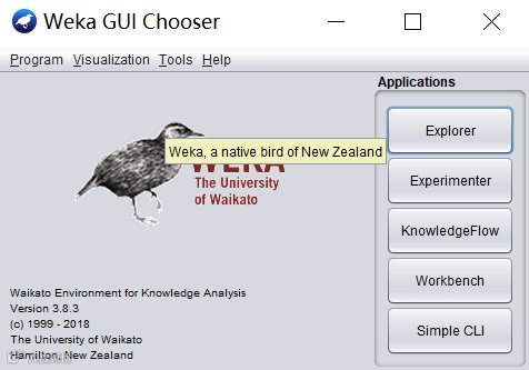 Weka的全名是怀卡托智能分析环境(Waikato Environment for Knowledge Analysis),是一款免费的,非商业化(与之对应的是SPSS公司商业数据挖掘产品-Clementine)的,基于JAVA环境下开源的机器学习(machine learning)以及数据挖掘(data mining)软件。它和它的源代码可在其官方网站下载。有趣的是,该软件的缩写WEKA也是新西兰独有的一种鸟名,而Weka的主要开发者同时恰好来自新西兰的the University of Waikato。