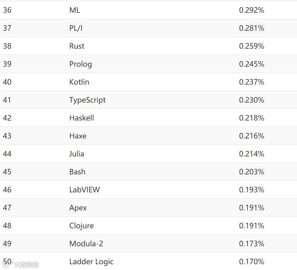请注意:该榜只是反映某编程语言的热门程度,并不能说明它好不好,也不能说明某语言所编写代码的数量。