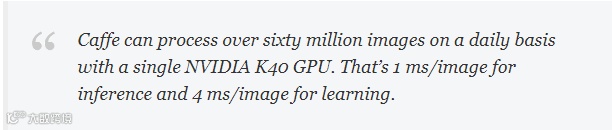 Caffe可以每天处理超过六千万张图像,只需单个NVIDIA K40 GPU,其中 1毫秒/图像用于推理,4毫秒/图像用于学习。