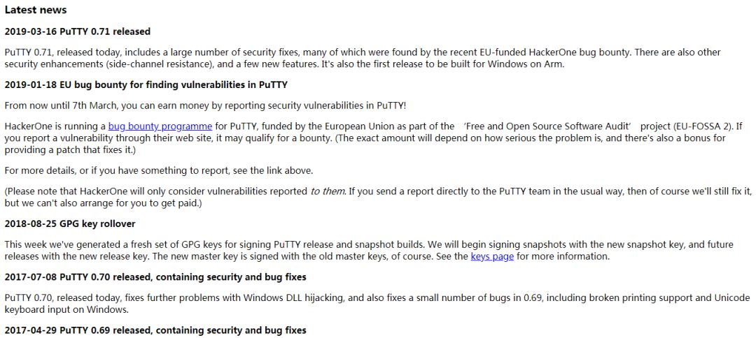 最后,相信大家此前也听闻过 PuTTY 被植入后门的事件,但这是发生在第三方汉化的版本上,而非来自官方。所以为了安全起见,建议大家通过官方地址下载 PuTTY,避免中招。