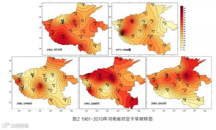 做1961-2010年河南省时空干旱转移图,可以清晰的看到变动趋势。