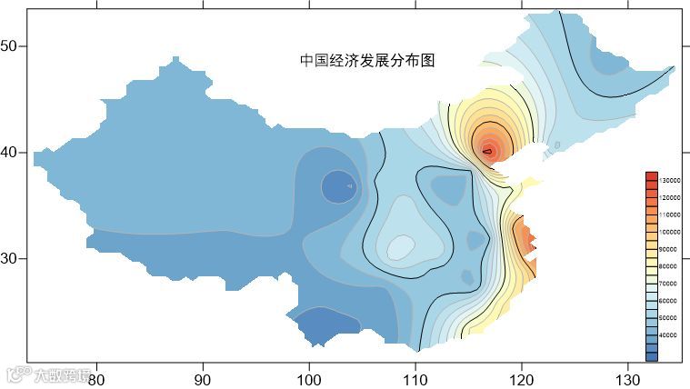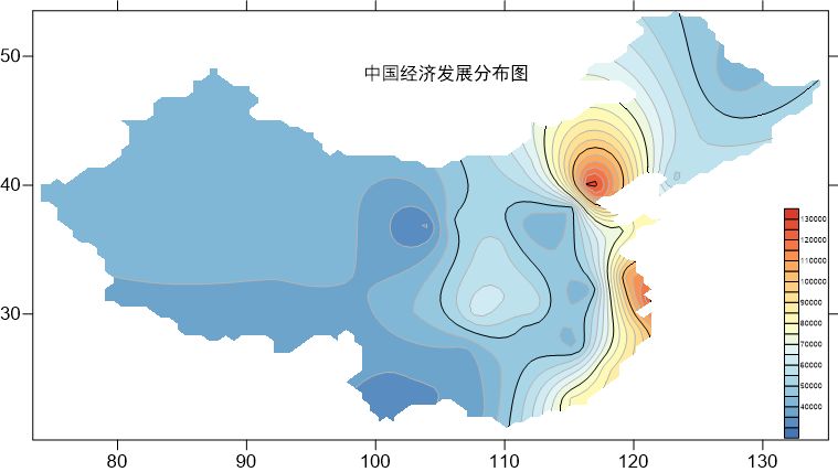 由中国经济发展分布图,可以看到,沿海城市的经济较内陆更发达。