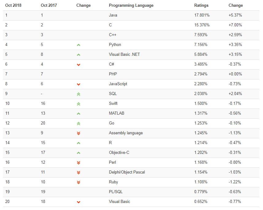 TIOBE 发布了 10 月份最新编程语言排行榜。