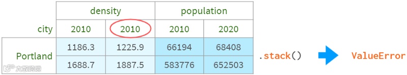 列必须不包含重复的值才能堆叠(在反堆叠时,索引也是如此):