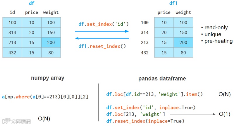 负责通过标签获取元素的对象称为index。它非常快:无论你有5行还是50亿行,你都可以在常量时间内获取一行数据。