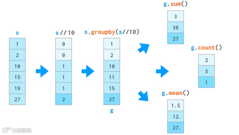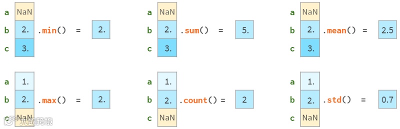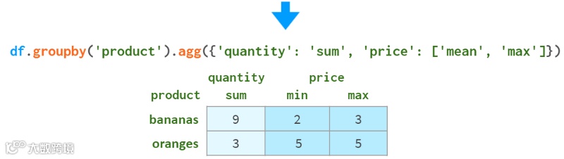 除了sum之外,Pandas还支持各种聚合函数:mean、max、min、count等。