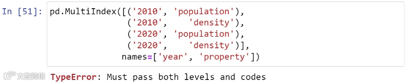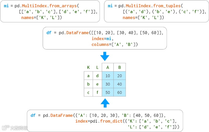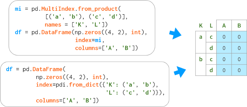 除了从CSV文件读取和从现有列构建外,还有一些方法可以创建多重索引。它们不太常用——主要用于测试和调试。