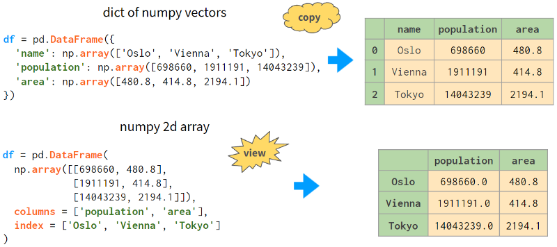 Pandas不需要像NumPy那样为整个数组重新分配内存;它只是添加了对新列的引用,并更新了列名的` registry `。