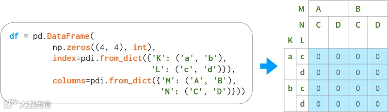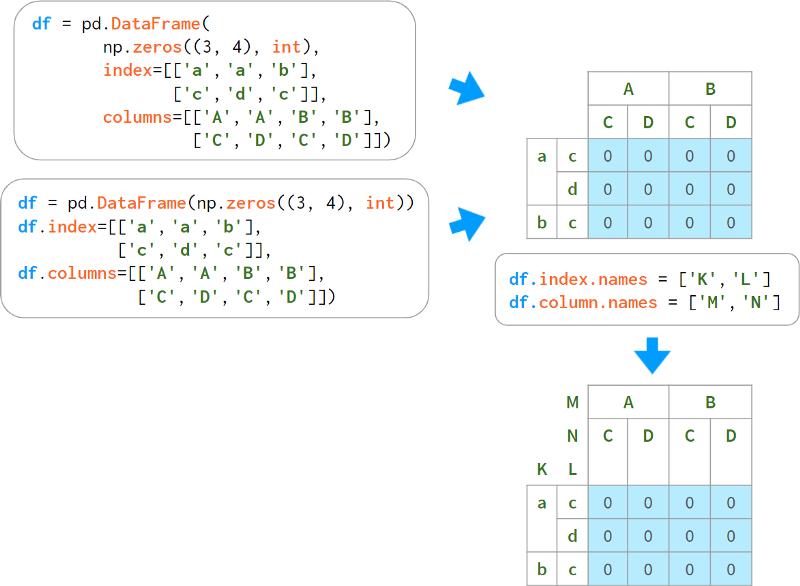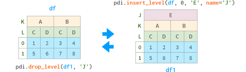 上面的所有操作都是从传统意义上理解“级别”这个词的(级别的标签数量与数据框中的列数量相同),隐藏了索引的机制。标签和索引。来自最终用户的代码。
