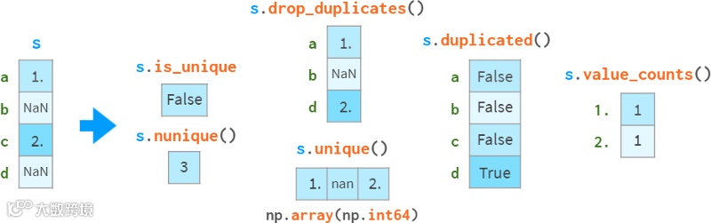 一般来说,在索引中保持值的唯一性是一个好主意。例如,在索引中存在重复值时,查找速度不会得到提升。Pandas不像关系型数据库那样有“唯一约束”(该功能仍然是实验性的),但它有检查索引中的值是否唯一的函数,并以各种方式消除重复。