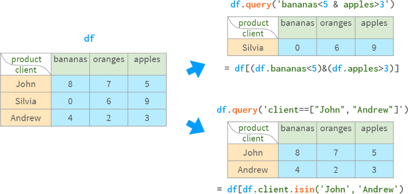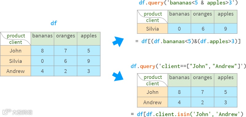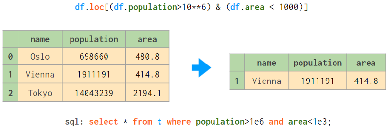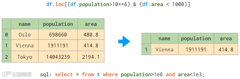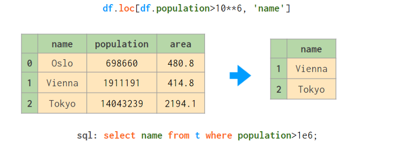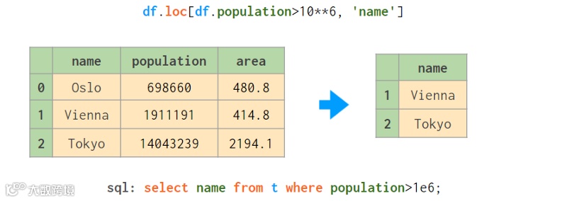 它方便快捷,但缺乏IDE的支持(没有自动补全,没有语法高亮等),而且它只过滤行,而不是列。这意味着你不能在不转置DataFrame的情况下用它实现df[:, ' population '](除非所有列的类型都相同,否则会丢失类型)。Non-writable。