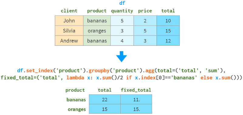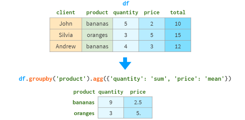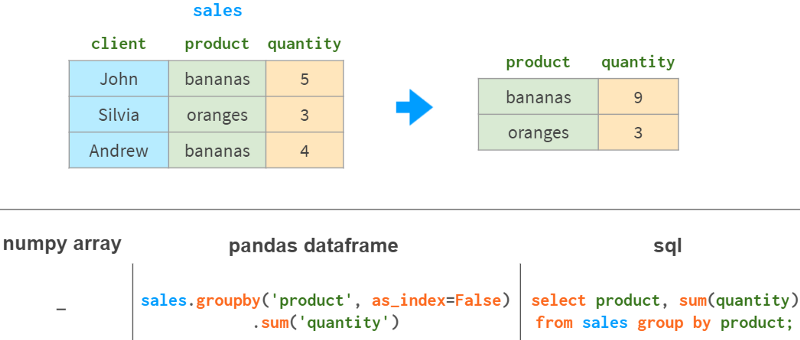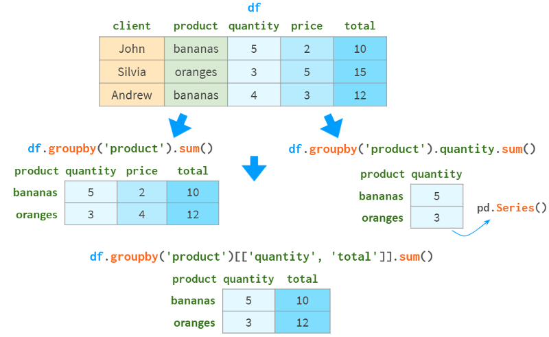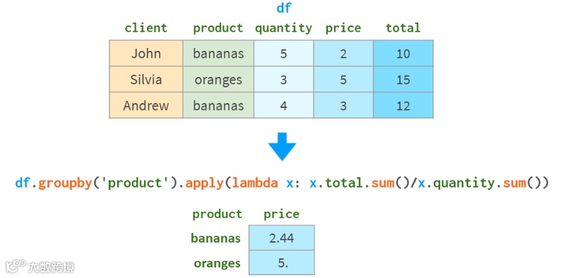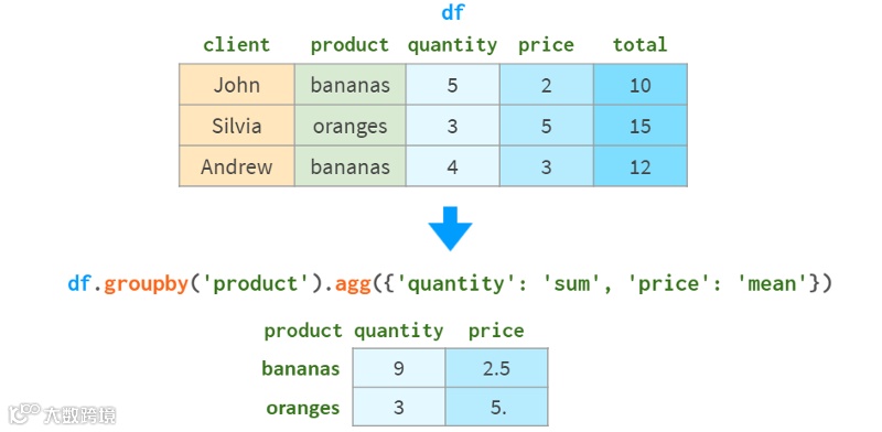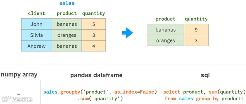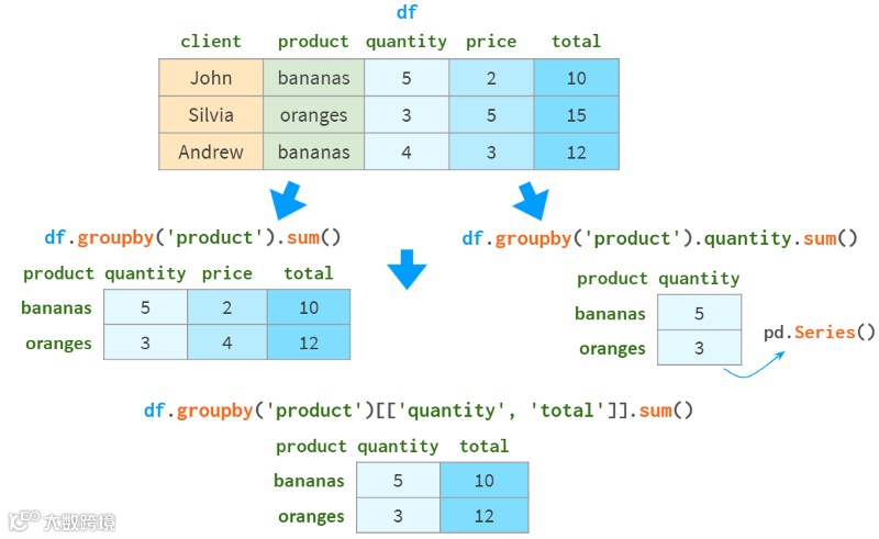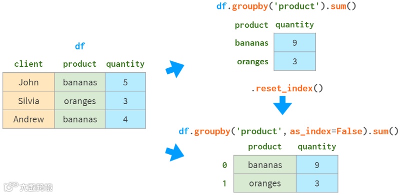 数据分析中的另一个常见操作是按列分组。例如,要获得每种产品的总销量,你可以这样做: