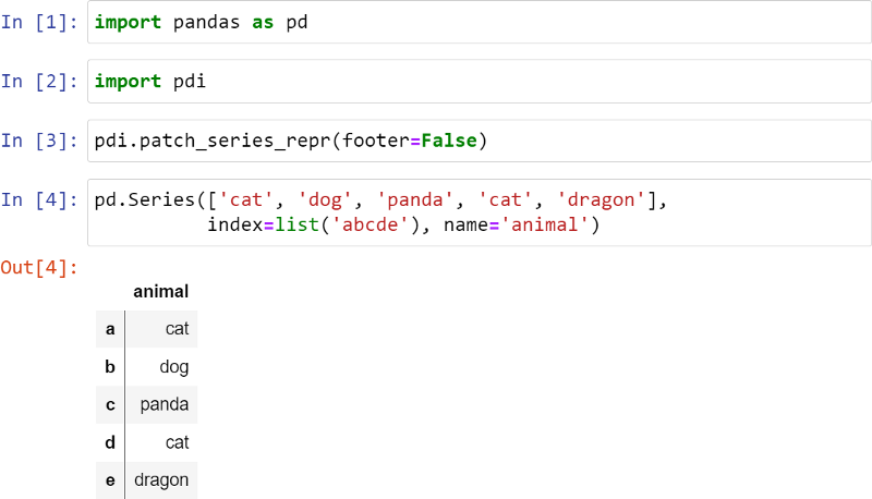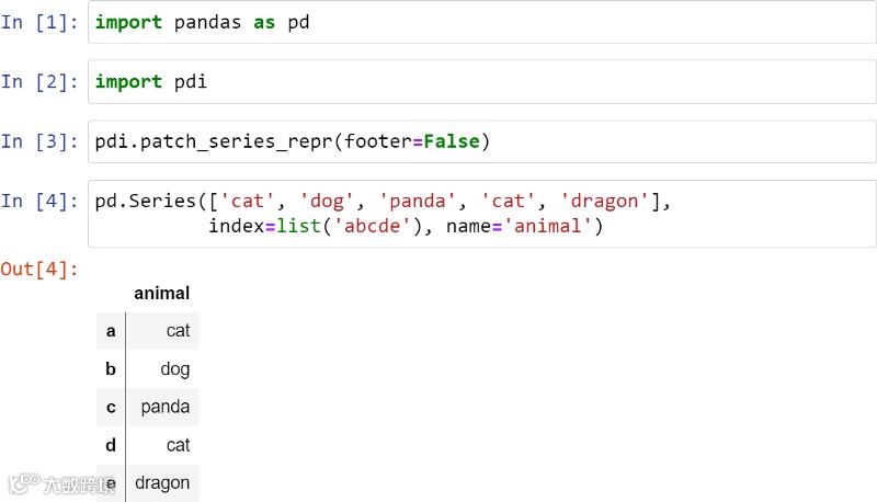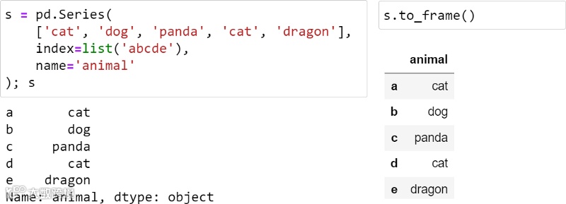 Series最糟糕的地方在于它的视觉表现:出于某种原因,它没有一个很好的富文本外观,所以与DataFrame相比,它感觉像是二等公民: