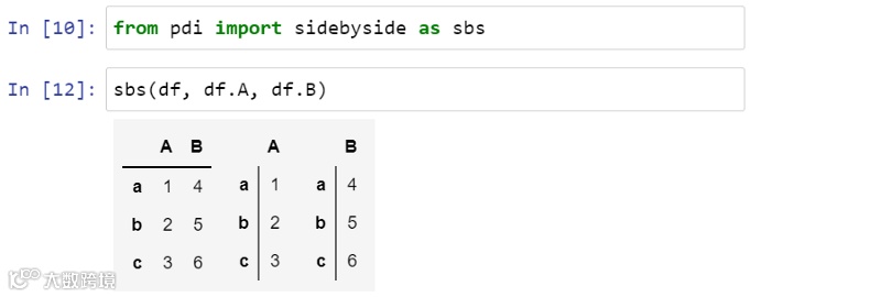 您还可以使用pdi.sidebyside(obj1, obj2,…)并排显示多个Series或dataframe: